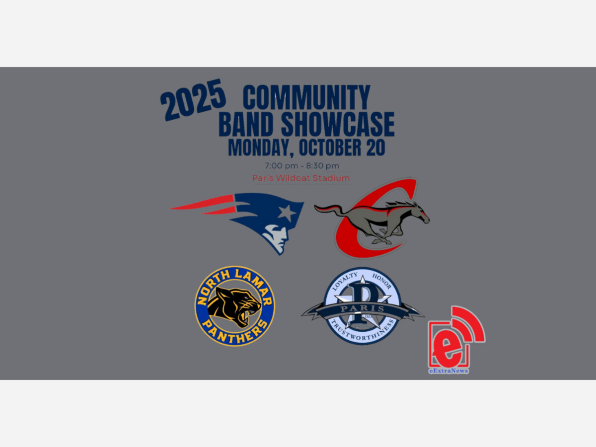 The community is invited to enjoy an evening of music and hometown pride at the Third Annual Area Band Showcaseon Monday, October 20, 2025, at 7:00 PM at Wildcat Stadium in Paris.